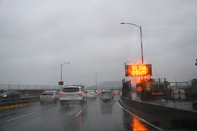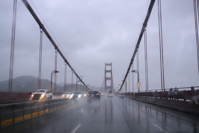 Fırtına sırasında Point Reyes 1 Otoyolunda araçlar temkinli ilerledi. Fırtına sırasında San Francisco kentinin simgesi olan Golden Gate Köprüsü üzerinde araçlar temkinli ilerledi.