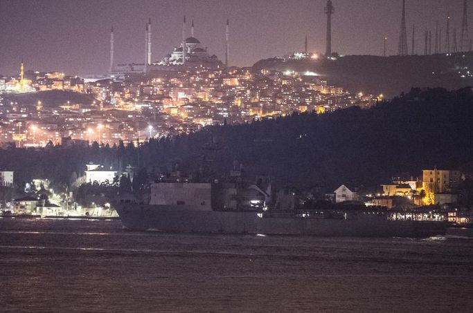 DHA'da yer alan habere göre, ABD'ye ait savaş gemisinin geçişi sırasında karartma uygulandığı ve mürettebattan bazı askerlerin güverteden çevreyi izlediği görüldü. Türk Sahil Güvenlik botlarının eşlik ettiği gemi, İstanbul Boğazı'ndan geçerken tüm ışıklarını söndürerek geçişini tamamladı.