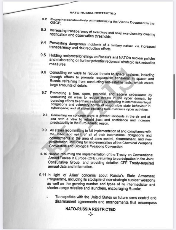 İspanya'nın El Pais gazetesi, ABD ve NATO'nun 17 Aralık'ta Rusya'ya gönderdiği yazılı yanıta ulaştı. Belgelere göre, ABD ve NATO'nun Rusya'ya silahsızlanma anlaşmaları önerdiği ortaya çıktı.