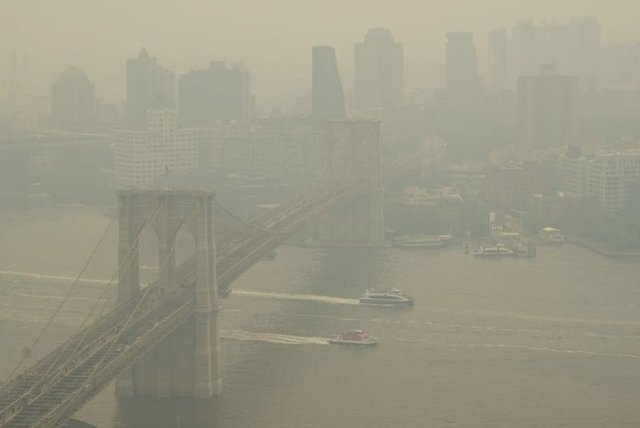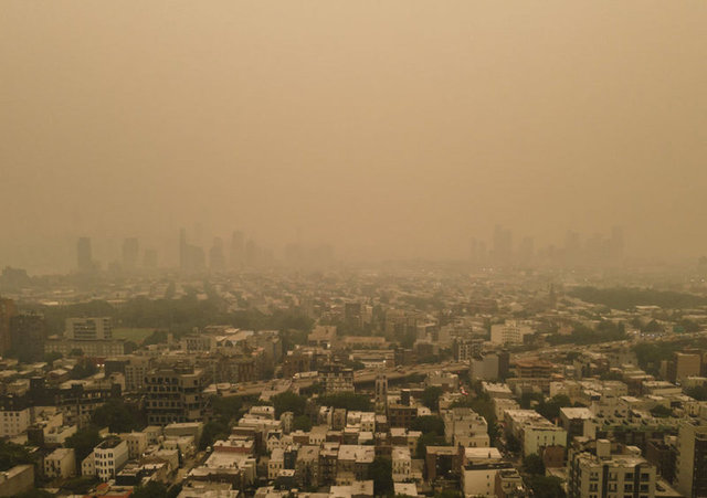 Gün boyu puslu havaya sebep olan New York'taki yangın dumanlarının kokusu hissedilirken, yetkililer, özellikle kalp, akciğer ve solunum yollarına bağlı rahatsızlığı olanları dışarı çıkmama konusunda uyarıyor.