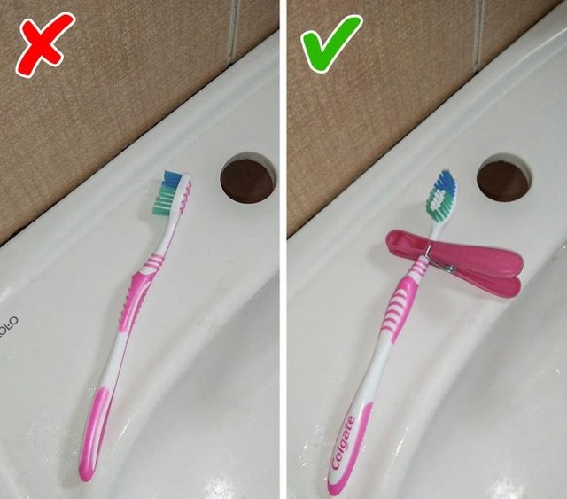 Diş fırçanızı koyacağınız bir bardak yoksa ve lavabonuz kirliyse sıradan bir mandal kullanabilirsiniz.