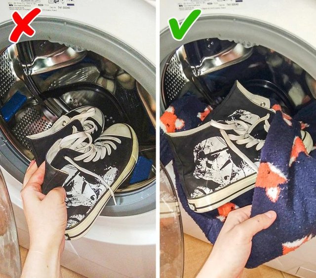 Spor ayakkabıları çabuk kirlenen eşyalardır ve bazı uzmanlar, ayakkabıları yıkarken birkaç eski havluyu da çamaşır makinesine koymanın daha iyi olacağını düşünüyor. Bu sayede makinede yeterince eşya olacak ve ayakkabılar sürekli cama çarpmayacaktır ancak beyaz spor ayakkabı yıkıyorsanız beyazları boyamayacak renkte kumaşlar kullanmalısınız.