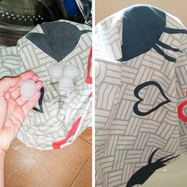 Çamaşır makinesinde çamaşırların kırışmasını önlemek için içine buz küpleri ekleyebilirsiniz, bu yöntemle buhar kırışıklıkları yumuşatacak ve kumaş daha az buruşuk görünecektir ancak çok kalın kumaşlarda işe yaramayabilir, çarşaf gibi ince kumaşlarda kullanabilirsiniz.
