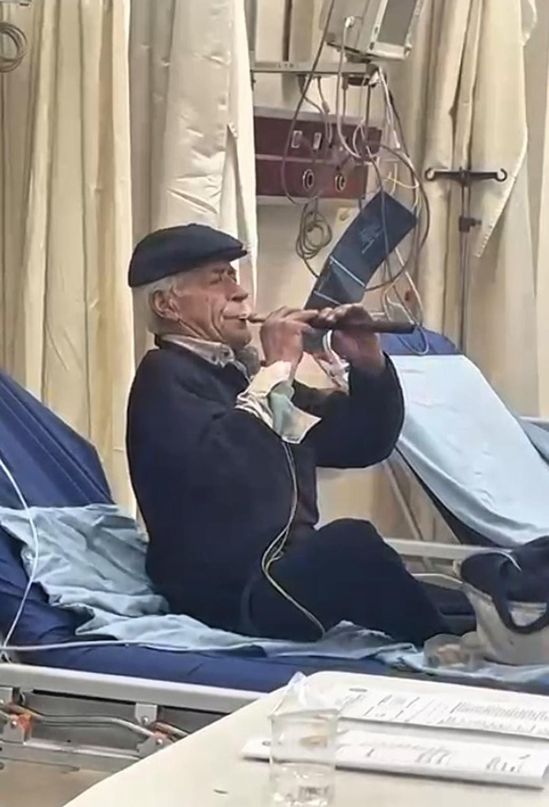 Kars'ta 86 yaşındaki zurnacı Nazım Koç, rahatsızlığı nedeniyle kaldırıldığı acil serviste zurna çaldı. "Acımı hafifletiyor" diyen Koç'un zurna çaldığı görüntüler, sosyal medyada ilgi gördü