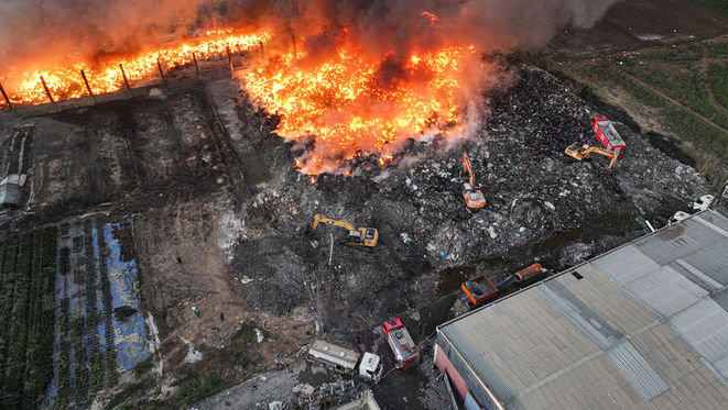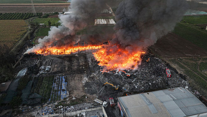 Adana'nın merkez Seyhan ilçesindeki geri dönüşüm fabrikasının bahçesinde çıkan yangın kontrol altına alındı