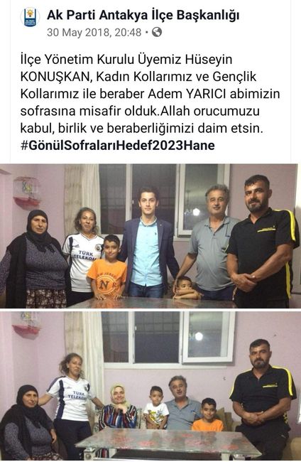 AK Parti Antakya ilçe teşkilatı, 30 Mayıs 2018'de Yarıcı ailesini ziyaretine ilişkin bu fotoğrafları paylaşmıştı.