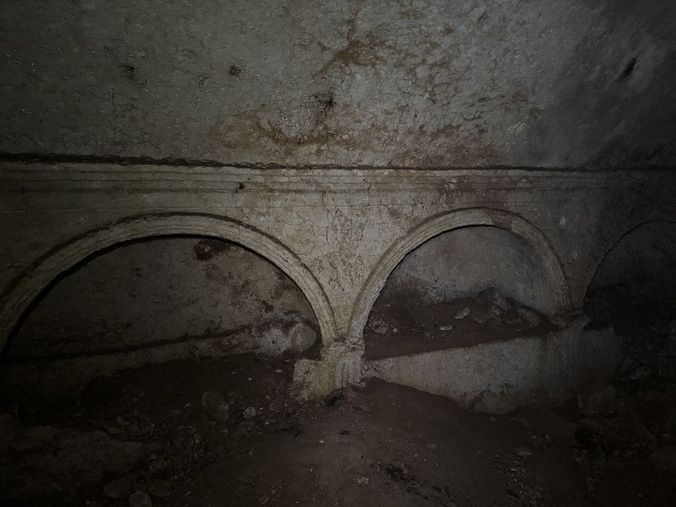 "Girişin tam karşısında yer alan kemerli mezarın içerisinde 6 yaban keçisi başı kabartması bulunuyor. Bu figürlerin girlandlarla (yarım çelenk görünümlü bezeme) birbirine bağlandığı görülüyor ayrıca bu kabartmaların üst kısmında istiridye motifleri yer alıyor. Bu motifler ölümsüzlüğü simgeliyor. Ne yazık ki bu süslemelerin bir bölümü zamanla tahrip olmuş durumda. Mezar odasının sağ ve sol bölümlerinde ise kandil yakıldığı ve sunuların bırakıldığı nişler (oyuk) tespit ettik."