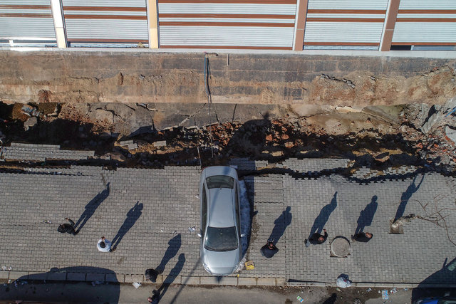 Binanın bu durumunu görenler, yol kenarında durup görüntülemeye çalıştı.