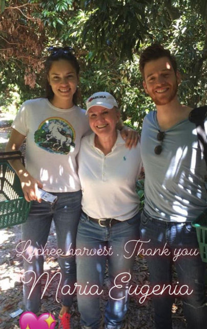 Çift, Lima'nın "benim sevgili arkadaşım Maria Eugenia" dediği yakın arkadaşının tarlasında liçi meyvesi ve kakao hasadına katıldı.