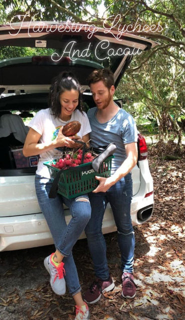 ABD'den sonra Brezilya'ya geçen çift, bölgeye özgü bir meyve olan liçi ve kakao toplarken çekilen fotoğraflarını sosyal medyada paylaştı.
