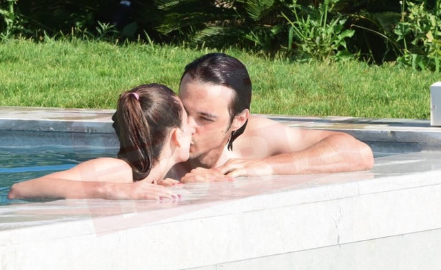 Aileleriyle sohbet edip bir yandan da keyifli vakit geçiren çift, daha sonra serinlemek için havuza girdi.
