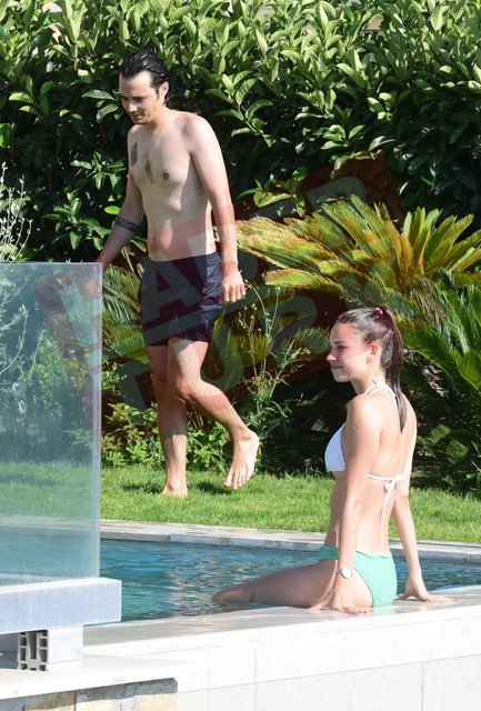 Oyuncu çift Afra Saraçoğlu ve Mert Yazıcıoğlu, tatil sezonunu Bodrum'da açtı. Önceki gün havuza girerken objektiflere takılan aşıklar, romantik anlar yaşadı