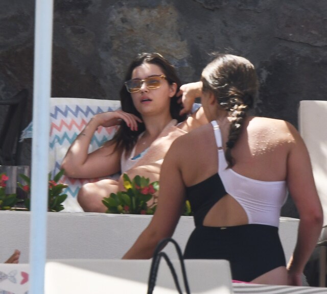 26 yaşındaki oyuncu, arkadaşları denize girerken onları şezlongdan izlemekle yetindi.