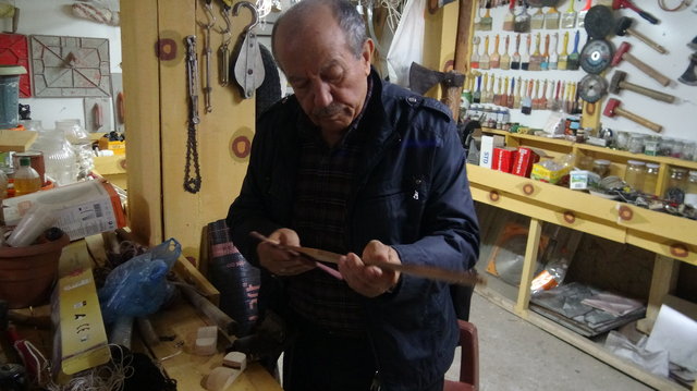 "Ağaca şekil verdikçe hoşuma gitmeye başladı. Ve o yaşlarda tarım aletleri olan pulluk, saban, tırmık yaptım. Türkmenistan, Libya'da çalıştığım yıllarda orada da yaptım. Ahşap kavak ağacı kullanıyorum. Kanada kavağının dışında hiçbir malzeme yoktur.