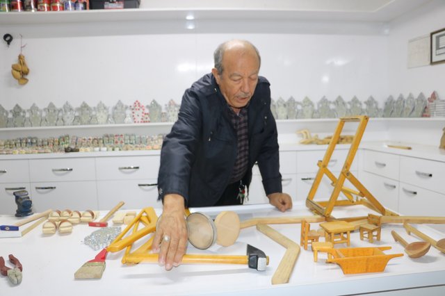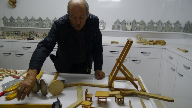 Afyonkarahisar'ın Sandıklı ilçesinde yaşayan 73 yaşındaki Halil Ceylan, gazetecilere, 14 yaşındayken arkadaşının babasının yaptığı ağaç oyuncaktan etkilendiğini söyledi.