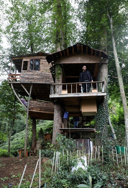 "Doğasever arkadaşlar, ağaca yaptığımız evler için önce biraz tepkiyle yaklaştı. Ben ağaca çaktığım her çivi için çevreye bir ağaç diktim. Kesinlikle ağaç kesimi de yapmadım. Evi daha güzel yapmak için içindeki bazı ağaçları kesebilirdim. Çok daha güçlü olması için çelik konstrüksiyon da kullanmadım. Sadece tahtaları tutturarak yaptım. Ağaçlar evin içinden geçiyor."