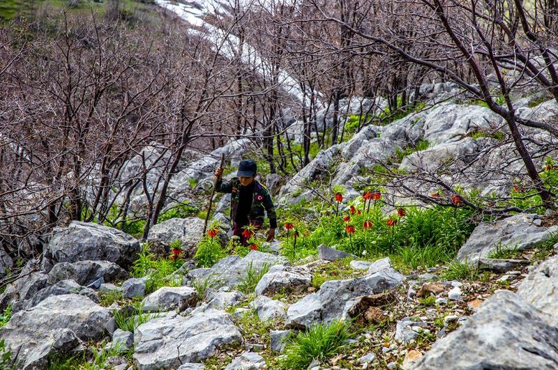 Anadolu'nun özel çiçeklerinden ters laleleri fotoğraflamak için kısa bir süreye sahip olduklarını dile getiren Yılmaz, "Burası yüksek ve kayalık bir yer. Ağlayan gelinlere ulaşmak zahmetli ama fotoğraflamak da bir o kadar zevkli" dedi.