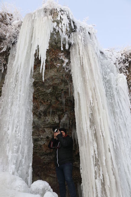 İstanbul, Bursa ve İzmir'den bölgeye gelen 12 kişilik fotoğrafçı grubu, Yolyazı köyü mevkiindeki kayalıklarda 5 metreyi bulan buz sarkıtlarını fotoğrafladı.