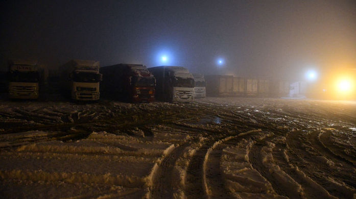Türkiye-İran arasındaki Gürbulak Sınır Kapısı'ndan giriş yapan çok sayıda TIR şoförü de Doğubayazıt'taki dinlenme tesislerinde tipinin etkisini kaybetmesini bekliyor.