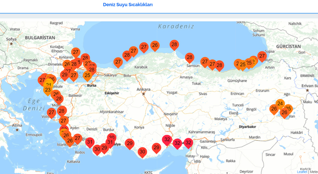 Meteoroloji'nin deniz suyu sıcaklık ölçüm sonuçlarına göre Aydın Didim 29 derece ölçüldü. Çanakkale Biga'da 28,6 derece, İzmir Konak'ta 28,5 derece, İzmir Dikili'de 27,7 derece, Gökçeada'da 27,6 derece Ege Denizi için rekor sıcaklık görüldü.