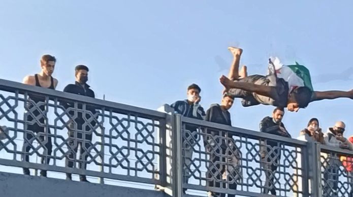 Koronavirüs tedbirleri kapsamında sokağa çıkma kısıtlamasının olduğu dün Galata Köprüsü'nde maskesiz şekilde gezen Suriyeli bir grup genç, denize atladı.