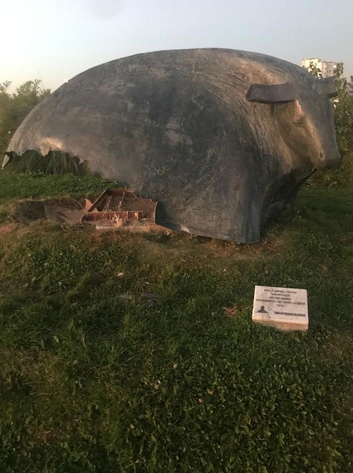 DHA'da yer alan habere göre, '3'üncü Uluslararası İzmir Heykel Çalıştayı' kapsamında 2015'te bronz malzemeden yapılan Bostanlı'daki boğa heykeli de parçalara ayrıldığı için ekiplerce bulunduğu yerden alındı.