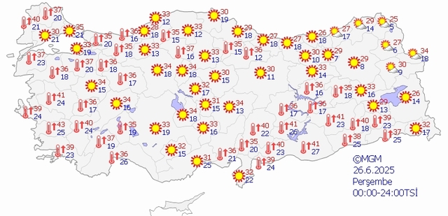 Afet İşleri Dairesi Başkanlığı (AKOM), Basra kökenli sıcak hava dalgasının, başta İstanbul olmak üzere yurdun büyük bölümünde etkili olmasının beklendiğini bildirerek; yaşlılar, çocuklar, hamileler ile astım ve kalp yetmezliği gibi kronik rahatsızlıkları bulunan kişilerin doğrudan güneş altında bulunmamalarını tavsiye etti. Peki, 'Bugün hava nasıl olacak?' İşte 26 Haziran 2025 Perşembe MGM ile İstanbul, İzmir, Ankara hava durumu tahminleri...