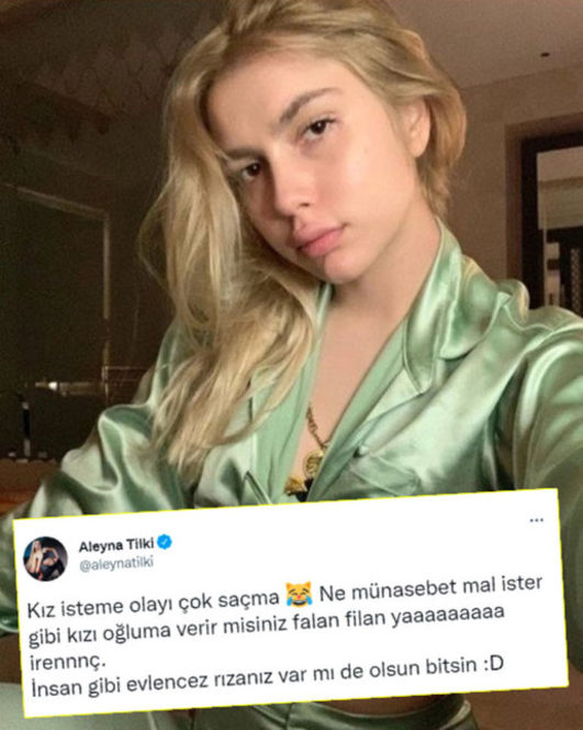 Öte yandan Aleyna Tilki, geçtiğimiz haftalarda da kız isteme olayını çok saçma bulduğunu söylemişti.
