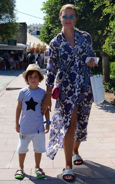 Bayram tatili için Bodrum'a gelen Ali Ağaoğlu oğlu ve Petek Ertüre ile buluştu.
