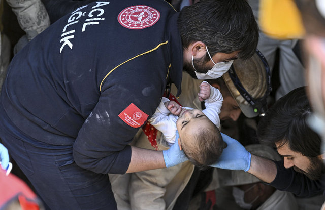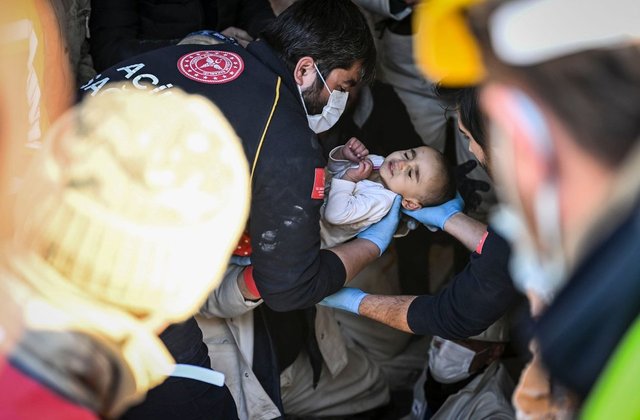 Kahramanmaraş merkezli depremlerin etkilediği Hatay Antakya'da, depremin 133'üncü saatinde 2 yaşındaki Aliye Dağlı enkazdan sağ çıkarıldı