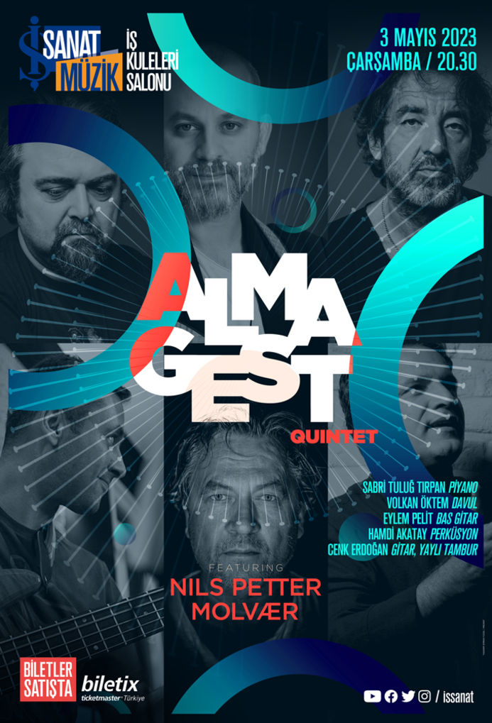 Caz müzik sahnesinin önemli isimlerinden Sabri Tuluğ Tırpan (piyano), Cenk Erdoğan (gitar, yaylı tanbur), Hamdi Akatay, (perküsyon) Volkan Öktem (davul) ve Eylem Pelit’in (bas gitar) bir araya gelerek oluşturduğu Almagest Quintet ve dünyaca ünlü caz trompetçi Nils Petter Molvær, 3 Mayıs Çarşamba, saat 20.30’da, İş Kuleleri Salonu’nda müzikseverler ile buluşacak.