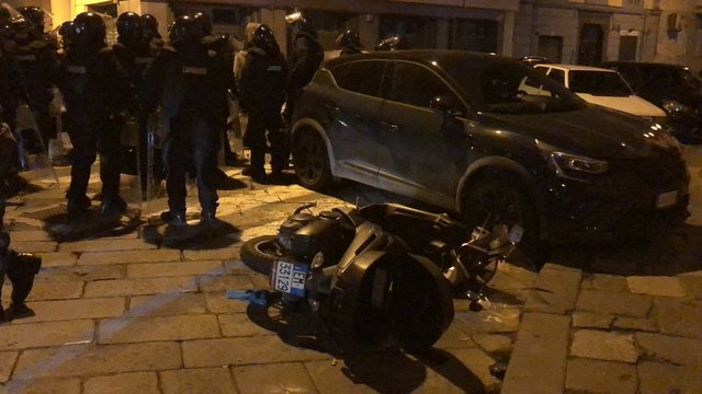 Çıkan olaylarda, bir polis aracı da olmak üzere meydandaki diğer otomobiller ve çöp kutuları ateşe verildi.