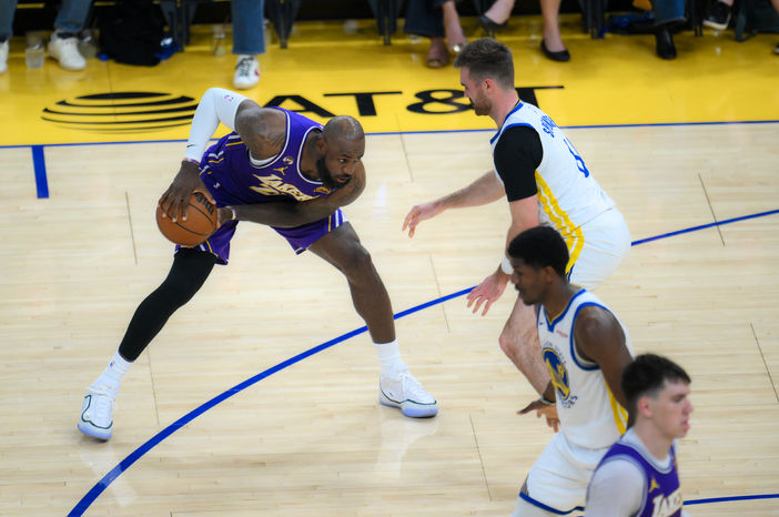 Chase Center'da oynanan mücadelede LeBron James, 26 sayı, 11 asist ve 8 ribauntla takımını galibiyete taşıdı. Deandre Ayton 21, Jake LaRavia 16 ve Luke Kennard 14 sayı kaydetti.
