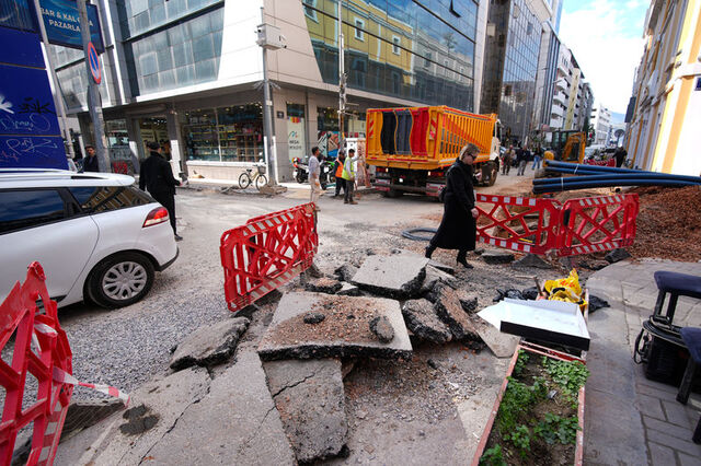 İzmir'in en işlek yerleşim alanlarından Konak ilçesinde Alsancak semtinde, birçok sokakta çeşitli kurumların sürdürdüğü farklı altyapı çalışmaları nedeniyle trafik akışı aksarken, yayalar da ilerlemekte güçlük çekiyor.