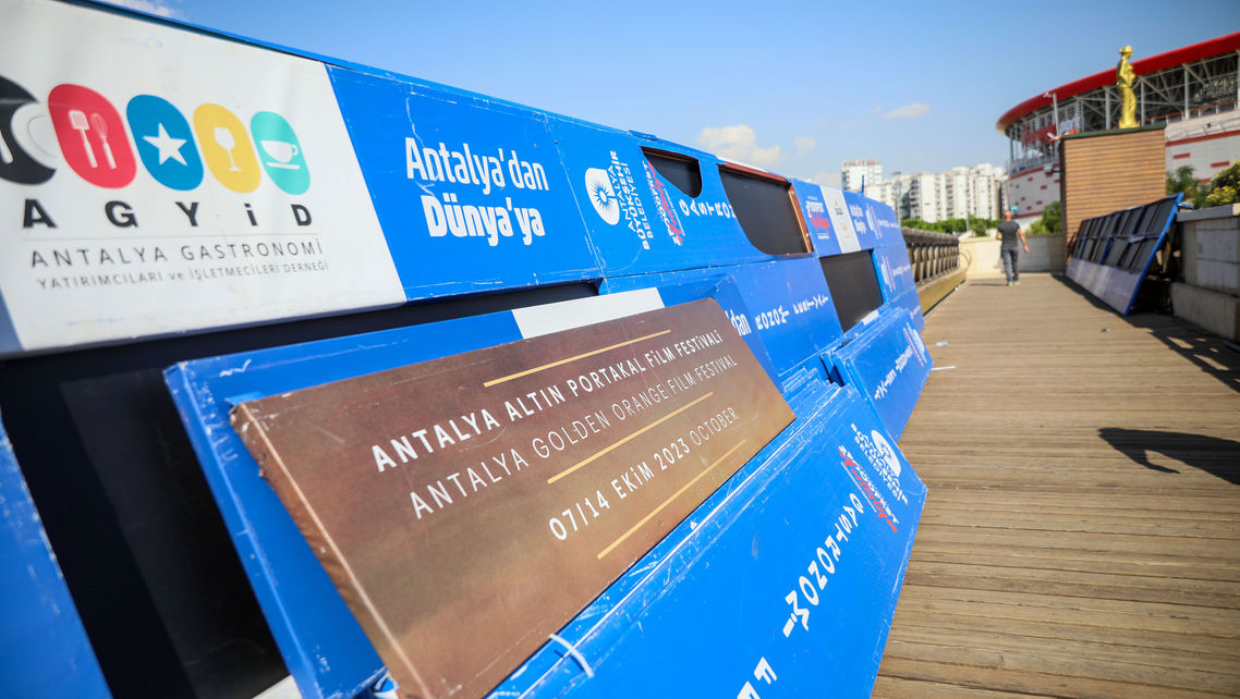 Antalya Altın Portakal Film Festivali'nin iptal edilmesiyle birlikte, şehirde festivalle ilgili unsurlar kaldırılmaya başlandı