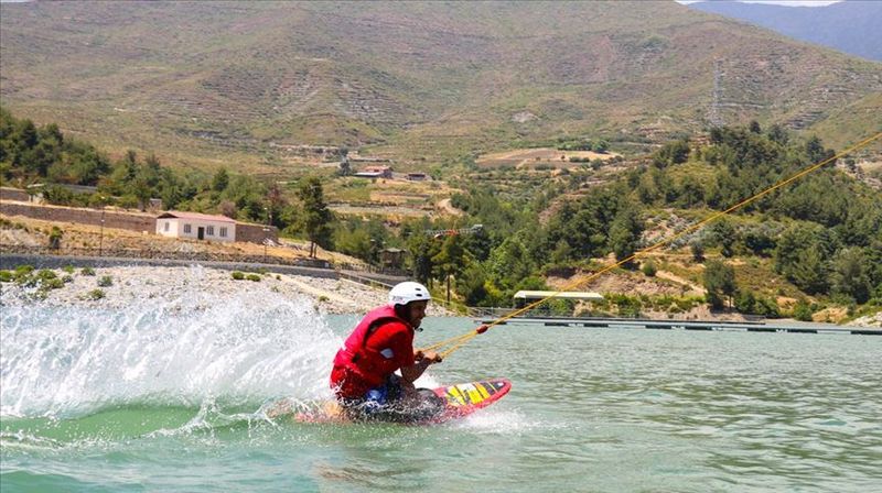 Güvenlik güçlerince yürütülen başarılı operasyonlar sonrası güven ortamının tesis edildiği Amanos Dağları'nın eteklerindeki Hatay Karlısu Göleti, su kayağı sporcularının uğrak adresi haline geldi.