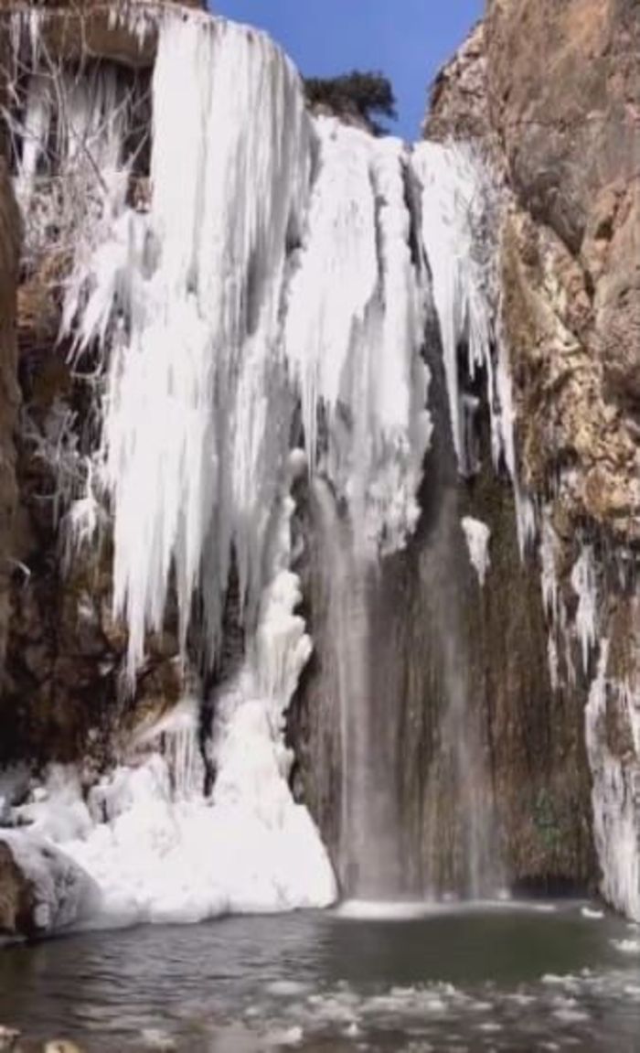 Amasya'da buz tutan şelaleler böyle görüntülendi