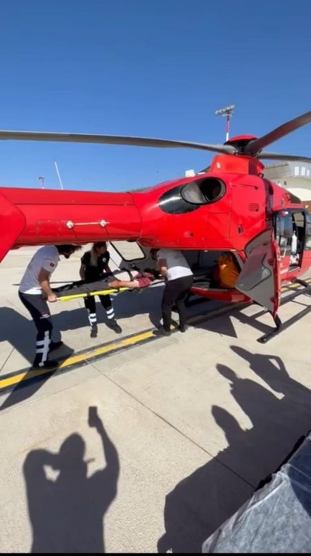 Görevlilerce ilk müdahalesi yapılan hasta, ambulansa alınıp ambulans helikopterin indiği alana götürüldü.
