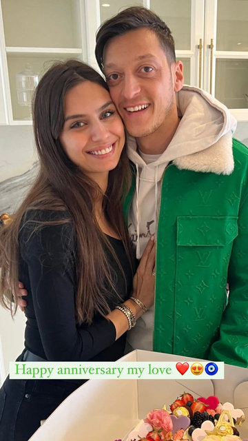 Birlikte pasta kesen ve objektif karşısına geçen ikili, o anları Instagram'dan yayınladı. Ünlü çift, gönderilerine, "Mutlu yıl dönümleri aşkım..." notunu düştü. Takipçileri Gülşe ve Özil'in paylaşımlarını beğeni yağmuruna tuttu.
