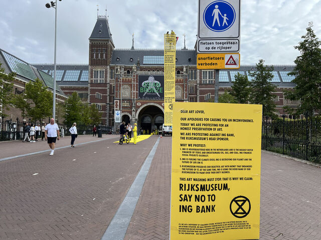 Göstericilerden biri, "Bugün Rijksmuseum önünde bu eylemi gerçekleştiriyoruz. Rijksmuseum'un ING'yle bağını kesmesini istiyoruz. ING, fosil yakıt endüstrisini finanse ederek hatalı bir iklim politikası uyguluyor." iddiasında bulundu.