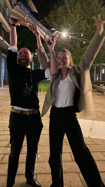 Anadolu Efes Yönetim Kurulu Başkanı Tuncay Özilhan'ın oğlu İzzet Özilhan'ın eşi Yasemin Özilhan, Anadolu Efes'in Euroleague şampiyonu olmasından sonra büyük mutluluk yaşadı