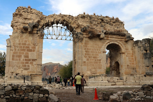 Anavarza'da kentin önemli bir olayın anısına yapılmış 22,5 metre genişliğinde 3 kemerli giriş kapısı bulunduğunu vurgulayan Gülşen, son yapılan kazılarda kapının hemen kuzey yüzünde kapıda duran Roma dönemine ait heykel tespit edildiğini söyledi.