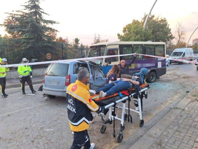 Ankara'nın Çankaya ilçesinde, otomobil ile yolcu minibüsünün kafa kafaya çarpıştığı kazada 1 kişi hayatını kaybetti, 14 kişi yaralandı