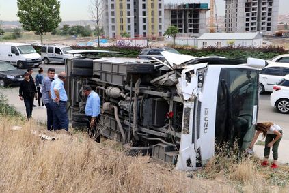 Ankara'nın Etimesgut ilçesinde işçi servisinin yaptığı kazada 2'si ağır 14 işçi yaralandı. Polis kaza ile ilgili inceleme başlattı