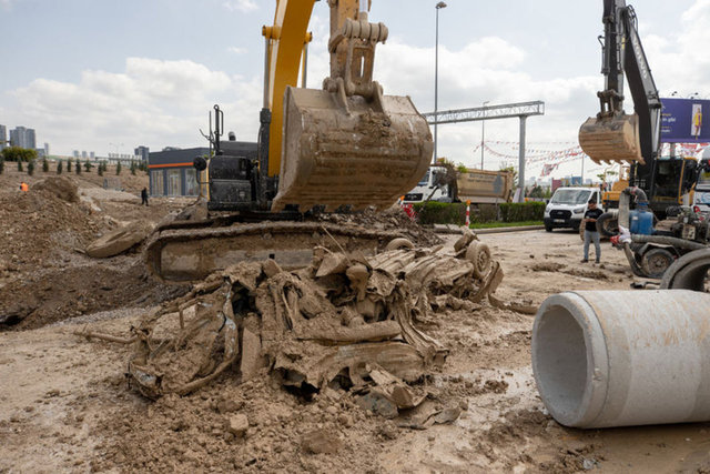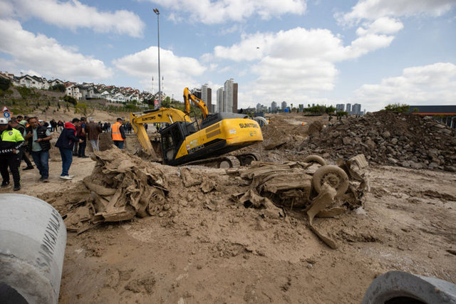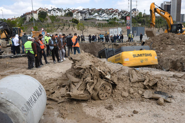 Ankara'da sağanakta çöken yola gömülen araç 19 saat sonra çıkarıldı