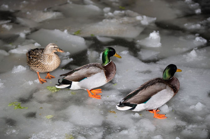 Parkın ev sahipleri kuğular ve ördeklerin yaşam alanları, bazı kısımları donan havuzdaki fıskiyelerden çıkan suların buz kalıpları oluşturmasıyla daraldı.