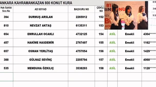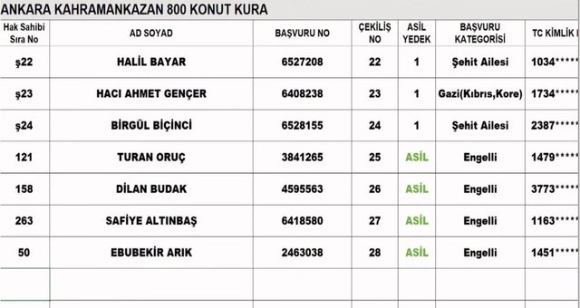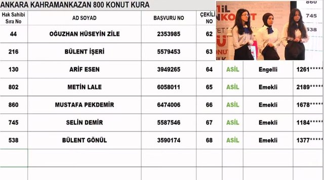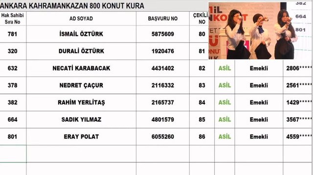 Ankara TOKİ kura çekimi nihai isim listesi sonuçları hak sahiplerinden bazıları...