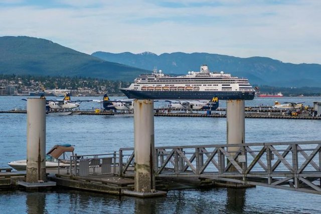 Bulutların denize alçalmasıyla havada asılı kalmış gibi duran gemi.