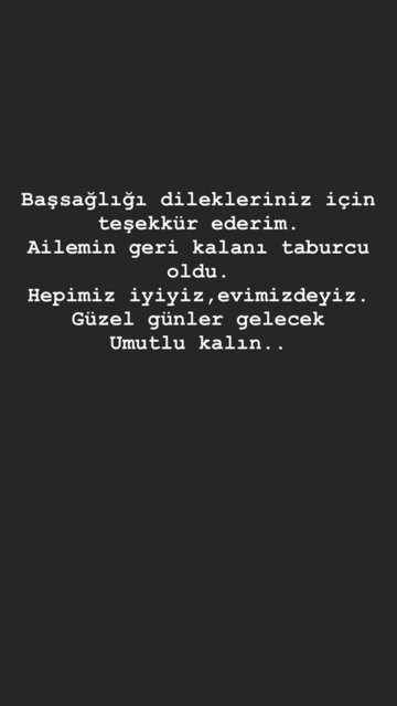 Başsağlığı dilekleriniz için teşekkür ederim. Ailemin geri kalanı taburcu oldu. Hepimiz iyiyiz, evimizdeyiz. Güzel günler gelecek, umutlu kalın.