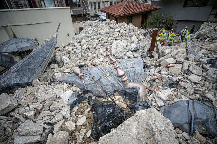 TARİHİ YAPININ PARÇALARINI ENKAZDAN KURTARMAYA ÇALIŞIYORLAR